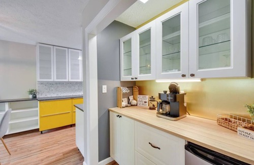 KITCHEN: Keurig coffee maker & grinder, cooking utensils, dishware & flatware, dishwasher, ice maker, microwave, toaster, toaster oven