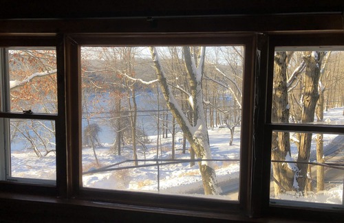 Enjoy the fieldstone patio with your group, where you’ll grill on the Weber stainless propane grill, enjoy your meals and the lake views from the 8’ picnic table, and cap off the day by enjoying a campfire and roasting marshmallows and making S'mores! Enjoy the views, your favorite beverage, and conversation on the covered front porch, furnished with comfortable outdoor furniture. Bring your own boat, up to 24’L, and moor it in your own slip located directly across the road, in protected, no wake water, for only $35 per night additional (proof of boat registration and insurance required). Usage of the convenient boat launch, is included at no added cost. Enjoy the convenience of the no wake zone opposite the cabin, about 1.5 miles in length, great for the kayaking or canoeing enthusiast. Take a short drive to the beach, or to the outdoor recreational area where you’ll enjoy the heated outdoor swimming pool and kiddie pool, or play