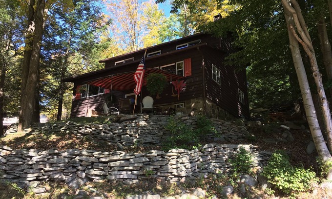 The cabin also offers a working natural field stone fireplace and electric baseboard heat with registers in each room. Have peace of mind during your stay as the property owner is environmentally-conscious, and