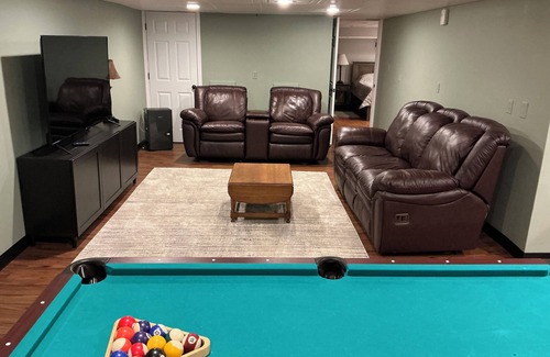 Our spacious home and close location to main Hershey attractions, just 4 mikes away, makes our home convenient and comfortable for your families visiting Hershey. Located along Route 39. There is a grocery store, convenient store with gas station and a Dunkin Donuts just a mile away. Plenty of room for everyone in our spacious Ranch style home with 4 Bedrooms and 4 Full Bathrooms. Just a short drive for your days of fun and exploring in Hershey and a nice location just outside of town. **Additions coming soon. Can message to inquire. Spacious Ranch Home with all new appliances, beds, and living room furniture. Plenty of room for your group to feel comfortable. Our Home has a total of 4 Bedrooms and 4 Bathrooms. The Main Floor has 3 Bedrooms and 3 Bathrooms, which includes an En Suite. The Lower Level has 1 Bedroom with a Private Attached Bathroom, similar to an En Suite however the Bedroom has 2 Beds in it. Bedroom 1 is the En Suite with attached full Bathroom and Walk In Closet that has a stackable washer and dryer. It has a Queen Bed with an Ease Zero Gravity Adjustable Mattress Frame, Dresser, Chair and TV. Bedroom 2 has a Queen Bed, Dresser and TV. Bedroom 3 has a Queen Bed with an Ease Zero Gravity Adjustable Mattress Frame, Chesser and TV. Bedroom 4 with an attached full Bathroom has 2 Queen Beds with Ease Zero Gravity Adjustable Mattress Frames and Tall Dresser. There is a Full Bathroom with a Tub/Shower between Bedroom 2 & 3 and another Full Bathroom between the Kitchen and Dining Room. Linens, pillows and towels are provided. Sunroom/TV Room is a nice sitting area, for children to play or Sleeping Area. There is a Lazy Boy Sleeper Sofa, Chair and Ottoman. Sleeper Sofa has a comfortable Queen size Memory Foam Air Mattress. The Kitchen is fully stocked with plates, glasses, mugs, pots/pans and kitchen utensils. Microwave, coffee pot and Keurig single pod coffee maker. Coffee is provided. All new appliances and a Counter height table with 6 stools. There is a Dining Room with room for 8 at the table. Counter Height stools from the Kitchen can be moved to the Dining Room table for more seating together. Living Room has leather sofa and 2 leather recliner rocker chairs. High speed internet/WIFI, and 55 inch TV with Roku. Lower level has full Kitchen, Leather Recliner Sofa, Leather Reclining Rocker Chair sofa, 65 inch TV with Roku and Pool Table that is great for kids. There is a back yard, deck with outside furniture and outside propane fire pit. Grocery and convenient store one mile from house on Route 39.