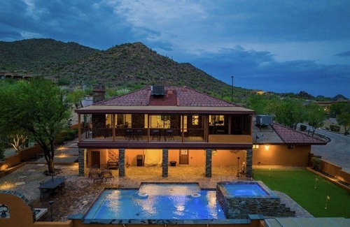 Get ready to be blown away by the spectacular views from our luxury villa in Mesa! Wake up to breathtaking views of the AZ mountain range, and make yourself at home in our furnished 4 BR home with modern appliances, a private pool, and a spa. We can provide extra rollaway beds upon request.