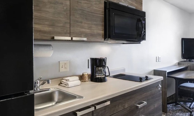 ✦ Each room is 334 sq. ft, equipped with complimentary toiletries, kitchen with basic amenities, high definition TV, available with Standard cable, ensuring cleanliness and comfort throughout your stay.