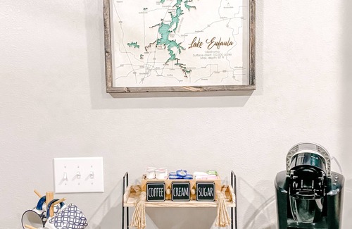 • Easy Water Access: Just steps from the front door, a short path leads to a sandy beach, boat docking area, and the clear waters of Lake Eufaula.