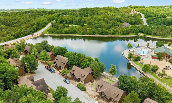 Come to the Ozarks to experience a bit of rustic charm while enjoying countless options for entertainment! This lake town, 4-bedroom cabin has an amazing back porch as well as 4 master suites, so everyone gets the best set-up! One of StoneBridge's THREE swimming pools (open seasonally) is just one street over and you can see the water from the little pond it sits next to from the cabin's front porch! Memories are ready to be made in this charming rustic lodge!
