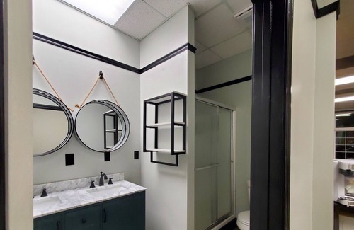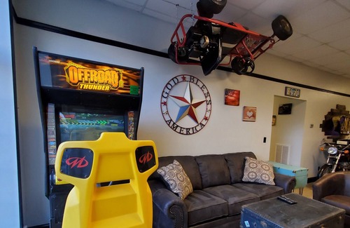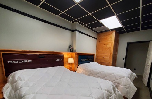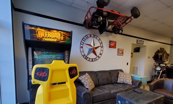 We are located just 4 miles from Pinnacle Creek Trailhead in the heart of Pineville. Our Lodge is like no other with all of the comforts of home. We have a full equipped kitchen, with a large refrigerator, stove, microwave, coffee maker, etc. We also offer 2 free arcade games for all ages and the most unique decor you have ever seen and great parking.