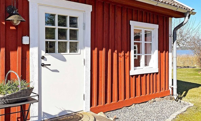Welcome to a real gem with a view over Lake Vänern and close to a cozy beach. You live in this nice red cottage with white knots, southwest of the charming lake town of Mariestad. Down to the lake is only about 250 m from this pleasant accommodation. Here you live well in a rural environment with close proximity to swimming, nature experiences and several golf courses nearby. The cottage is charming and well-planned with its 55 sqm and carefully renovated in 2023 with a new kitchen from HTH. The interior is warm and very homely. Where the new meets the house and its charm. In total, the house offers 4 beds. The large bedroom is directly to the left with a double bed of 160 cm. Inside there are two comfortable armchairs and a small TV corner. The fireplace is not usable, but feel free to light a candle to get extra atmosphere in the evenings. across from the bedroom is the house's second bedroom with a 140 cm bed. The hall has underfloor heating and also a stove that crackles a lot in autumn. Straight ahead, the nice kitchen opens up with everything you could need. Here there is a kitchen sofa, dining table and chairs. Behind the nice wooden door is the house's bathroom, which is bright and fresh. Toilet/washbasin and shower cubicle and also with washing machine. So if you want to stay longer, this is a perfect accommodation or if you are traveling with small children. There is plenty of seating outside and the lawn is large and pleasant to play in. There is also a boule court that you can borrow. The house shares land with the nice house owners who live in the red house next door. Here, next to Lake Vänern, there is the opportunity to sunbathe and swim on several beaches. So there are plenty of places to explore. Feel free to bring bicycles because there is a cycle path "Vänern runt" right next to the house. In the lake town of Mariestad, 7 km, there are beautiful streets with cobblestones and well-preserved 17th-century houses. Göta canal starts in Sjötorp, just north of town. Feel free to rent a bicycle and take a trip along the beautiful canal. The river Tidan flows through the municipality and has its outlet in the center. In the countryside around the city there are several cultural treasures worth a visit and in the center of the city is Gamla Stan, one of the country's best preserved city centres. 5 miles to Skara Sommarland water park with a variety of attractions that are always appreciated by the children. For those interested in golf, Mariestads GK's golf course is only a few km from the cottage. A warm welcome to a very pleasant holiday.