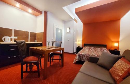 4 pokoje KD in Kazimierz Dolny provides accommodations with a garden and a terrace. With pool views, this accommodation provides a swimming pool. Free Wifi is available and private parking can be arranged at an extra charge. Each unit features a patio, a fully equipped kitchen with a fridge, a dining area, and a flat-screen TV, while the private bathroom includes a walk-in shower and a hair dryer. There's also a stovetop, kitchenware, and a kettle. At the apartment complex, all units are equipped with bed linen and towels. The area is popular for skiing and cycling, and bike rental is available at the apartment. Kazimierz Dolny Castle is a 7-minute walk from 4 pokoje KD. Radom-Sadkow Airport is 41 miles away.