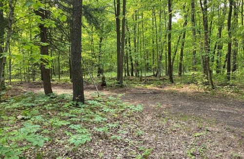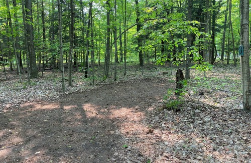 Primitive wooded campsite in a Maple-Beach forest. One of four campsites available on this property. They are all about 150 feet from each other. These campsites are about 1/4 of a mile down on a wooded trail on my 20 acres of land. The campsite has its own campfire pit, flat spot for a tent (tent not included) and places to park. Smaller RV's or Popup campers will fit well in this site. Fresh drinking water are available at the beginning of the trail. The port a poty is shared with the other four campsites. There are wooded trails on the property as well.