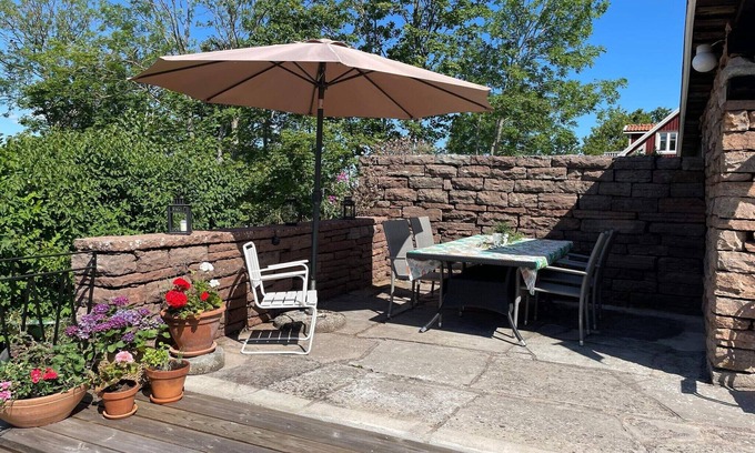 Welcome to a wonderful house at Solliden/Borgholm, located in the cozy idyllic Borgehage where you only have a 1200m walk down to the nice swimming area with a jetty. Here you can really enjoy the peace and quiet while having Borgholm and Köpingsvik close by. To Borgholm (4.5km) there is a smaller road via Solliden and Borgholm Castle Ruins. In the large, pleasant garden you have several nice patios. So why not enjoy the morning sun in the secluded patio at the front, have lunch under the large pear tree. Seek afternoon shade on the patio by the lilac arbor and enjoy the evening sun on the magically beautiful patio made of Öland stone. There are also sun loungers where you can lean back and enjoy the day. You have an open kitchen with a nice dining area where you can prepare your meals. In the beautiful living room, the ceiling is open up to the eaves, which gives a lovely space and airiness. Here you will find a comfortable sofa and armchairs in front of the TV. In the main house there is a beautiful bedroom where you sleep in a comfortable double bed. There is also a cozy sleeping loft with a double bed one floor up. Note that there is a steep staircase to the loft and that the ceiling is low. The sofa in the living room can be made into a sofa bed. In the garden there is a nice guest house with a double bed. The bathroom with washing machine is cleverly placed so that it can also be reached via a door from the outside for those sleeping in the guest house. 3 bicycles in existing condition are on site. You are responsible for these and must return them in good condition. The house is not rented to young people under 25 years of age. Nor for loud parties. Not allowed to charge electric cars. If you want larger beaches, Köpingsvik is close. Kappeludden on the eastern side is also recommended. In the vicinity there is Solliden with its fine Slottscafé and Borgholm's astonishing castle ruins. Both Solliden and the ruins host musical events, which makes the accommodation perfect as you are only a short walk away.