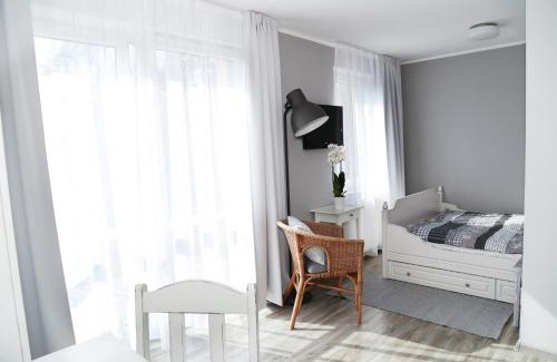Offering garden views, 4 STRONY ŚWIATA Dom Gościnny in Dźwirzyno offers accommodations, a garden, a terrace, and barbecue facilities. There's a private entrance at the apartment for the convenience of those who stay. There's a picnic area and guests can access free Wifi and free private parking. The units come with parquet floors and feature a fully equipped kitchenette with a fridge, a dining area, a flat-screen TV, and a private bathroom with shower and a hair dryer. A stovetop and kitchenware are also featured, as well as a coffee machine and a kettle. At the apartment complex, the units are fitted with bed linen and towels. A bicycle rental service is available at the apartment, while cycling can be enjoyed nearby. Dźwirzyno Beach is a 4-minute walk from 4 STRONY ŚWIATA Dom Gościnny, while Kołobrzeg Railway Station is 8.5 miles away. Solidarity Szczecin-Goleniów Airport is 69 miles from the property.