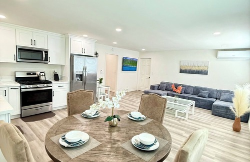 Great location, 10-15 mins to Ontario Airport, Ontario Mills, Ontario Convention Center, Pomona Fairplex, Raging Waters and more! Mins away to the old town of City of Upland, colleges, shops, markets, malls, parks, golf courses, banks, hospital, schools and more... Lovely home nestled in a quiet neighborhood. Perfect place newly remodeled with extraordinary designs & high-end appliances. Also, it's time for you to visit DTLA, Hollywood & Disneyland and so on...