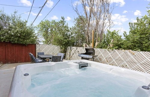 KushKations Grant features a private enclosed backyard with top amenities to entertain your guests. A 6-seater hot tub, a dining table, propane gas grill, and a firepit. Guests needs to either bring their own propane gas or utilize the Cynch application to place an order. Utilize the hottub to unwind under the stars and truly hit the reset button. Morning, night, summer or wintertime, the hot tub provides year round relaxation for guests.