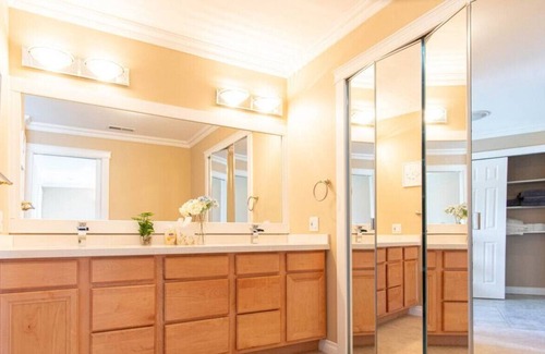 This 6BR 3BA 3000 sqft newly renovated house has 2 units. 11 beds in total: 5 queen, 4 full, 2 sofa beds, easily accommodating 20+ people. Each unit features kitchen, living room, dining area, AC, laundry set, 55" TV, new appliances and furnitures, etc. You will have plenty of outdoor space to enjoy the beauty of nature. The house is located in a quiet and convenient location close to everything. Perfect for work groups, offsite, family and friend reunions.
