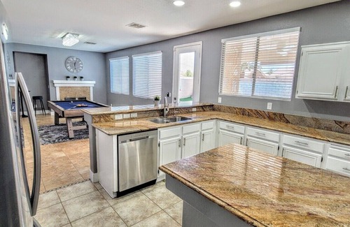 #44Villa w/Opt Heated Pool&Spa-Min to LV Strip/LAS has 7 Bedrooms , 3 Bathrooms, and max occupancy of 15 people. The minimum rental for this property is 1 nights, but this can change depending on the season you plan on staying. Previous guests have given good rated it, and VRBO labeled it a top-rated House because of the excellent services rendered by the owner or manager of this House, and has consistently provided great experiences for their guests. Most families or guests that use it recommend it to their friends and some of them are repeat guests. House has a friendly neighborhood, and the Silverado Ranch has interesting places to visit. If you want to learn more about the House in Silverado Ranch, such as places to visit and things to do nearby, you can check below to learn more.