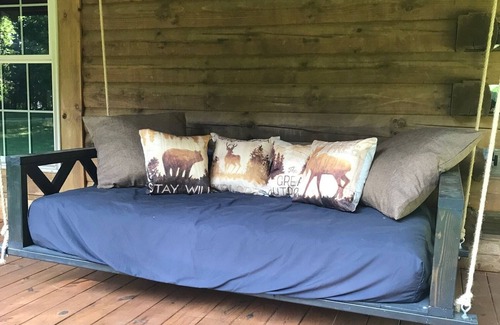 Enjoy the holiday season-cozy up to a fire at this 4500 sq ft Log Home w/wrap around covered porch on 17 flat wooded acres. Open kitchen, living room. sunroom for entertaining. Perfect for large families, Xmas parties, reunions, birthdays, anniversaries, groups of couples, or small weddings. Basketball hoop, playset, 3 car garage, & parking for over 15 vehicles, boats, campers, or trailers. Sleeps 16+ w/5 large bedrooms with 3 of the bedrooms on the 1st floor (two with comfortable king size beds). 3 sofas w/8 total recliners. Commercial size freezer, refrigerator, gas stove, propane grill, and most kitchen accessories needed for entertaining. Work from office w/internet & cell service. Walking/ATV/horse trail and 2 chickens w/coop. Lake Reba Park & Richmond 10 min away. Peaceful seclusion. Can interact/feed the chickens or they can stay in their coop/run-fresh eggs available most of the year. Cornhole, foosball, and ping pong. Short walk to the pond for kids to catch small fish. Plenty of room for ATV, boat, or camper parking if hitting the nearby ATV trails or lakes. Over 20 different species of trees to identify leaves with the kids-leaf ID book provided, Lincoln logs, and other games. Upstairs recliner and two TVs upstairs for kids to watch movies or play video games (game system not provided). Cuddle by the fire or porch bed swing with your loved ones or relax on the porch in rocking chairs. Receive a massage from your loved ones on the massage table or the massage chair in the bedroom or outside on the porch. Eat outside with the wildlife at your private oasis. Entire house and 17 acres all yours to enjoy-don't have to share with others. Self check in/out with electronic keypad lock. ATV parks/trails, Daniel Boone Forest, Natural Bridge State Park, Red River Gorge, and Lexington within one hour. Ark Encounter 75 min away & Creation Museum a little further. Guidebook can be emailed prior to your stay and a copy will be provided in the family room. Please message host with a booking inquiry if you would like to stay within the next 60 days, you have a large group, and are unable to stay for three or more nights. There are several indoor security cameras that should be unplugged to disable them after the guest arrives at check in and plugged back in at checkout. There are outside security cameras for the property as well.