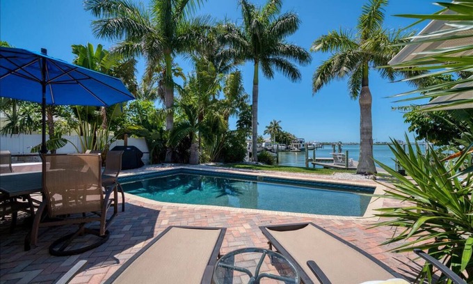456 Waterfront w/Dock, 3/Br Home Heated pool with Golf Cart in IRB Sleeps 10 | House in Indian Rocks Beach