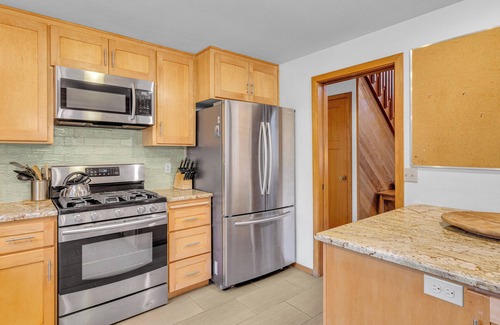 Step inside to be welcomed by gorgeous wood paneling, large windows, and skylights that flood the home with natural light. The spacious 1,911 sq. ft. layout offers two levels of comfortable living, perfect for families and groups of friends.