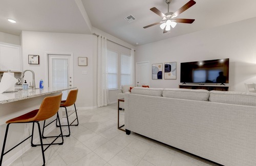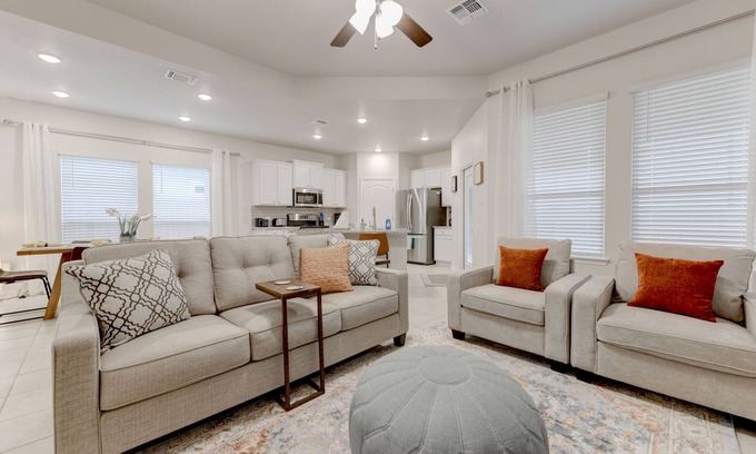 Welcome to our newly built 4 beds, 2 bath fully furnished home in Temple, Texas. This home is the perfect getaway for families, corporate, business travel workers. The home is located minutes from Baylor, Scott and White and VA hospitals, major freeways, restaurants and shopping and just a short drive to Georgetown, Killeen and Waco. Home comes with a well-equipped kitchen, work desk/chair, smart TVs, high speed fiber internet, washer/dryer.