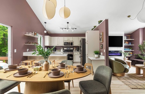 Traverse Retreat is nestled on a peaceful one-acre lot. This newly designed home is the perfect blend of relaxation and fun. Brand new furniture, bedding, stocked kitchen and cozy living spaces ideal for families or groups. Movie/game room with universal arcade machine, karaoke and poker table. Big backyard features HOT TUB, two disc golf baskets, golf practice net, cornhole, and FIRE PIT! Two car garage doubles as additional game area with darts, ring toss and ping pong. Help yourself to our inflatable stand up paddle boards with car pump. Less than 10 minutes to downtown Traverse City. Ten minutes to Farm club which is a farm, brewery, restaurant and market place recently featured in The New York Times. Minutes to the TART bike trail and wineries of Leeanau County. Twenty-five minute drive to Sleeping Bear Dunes. Unwind. Have fun! Up to 2 dogs welcome with a $100 pet fee.