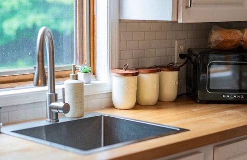 Our guests love to relax in the hot tub, gaze at starry sky, cook in the full kitchen, and gather around the firepit after a day outdoors.