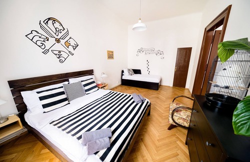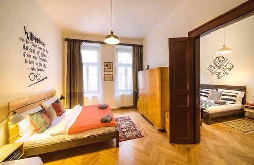 Unique & Magical apartment inspired by our beloved Harry Potter located in one of the most desired residential neighbourhoods in Prague called Vinohrady. Spacious apartment can accommodate up to 13 people with 2.5 bathrooms, comfortable beds (hotel standard beddings), fully equipped apartment ready for daily ordinary living.