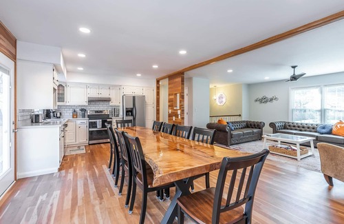 Welcome to The Komi. This 4 bed, 3 bath home is an oasis in the middle of Lexington. This cozy getaway has SO much to offer; in ground pool, hot tub, stone fire pit, basketball court, and thats just the outside! Inside boasts an open floor plan living area with a HUGE dining table. Three bedrooms upstairs along with two baths. Downstairs is the perfect place for the kids with bunk bed trundles that sleeps up to 8. Oh, and did I mention the home movie theater! The Komi has it all!