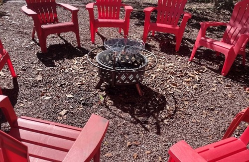 BACKYARD has a private JACUZZI, fire pit with large Adirondack chairs around it, BBQ grill, deck with table and chairs. Backyard and hot tub have outdoor lights you can turn on if you want to enjoy a well lit outdoor area at night.