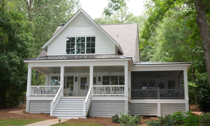 Come and enjoy this waterfront home on beautiful Lake Oconee. This property has it all! This coastal farmhouse is clean, sophisticated and comfortable for more than one family or just a couple looking for a getaway to relax. Located just one mile from the Harmony Crossing Shopping Center, this property is in a great location with a great view to match! Upon entering the long and wooded driveway, you will feel the privacy and tranquility of this lake getaway. The main floor has an open floor plan and a wall of windows with views from almost every seat in the house.