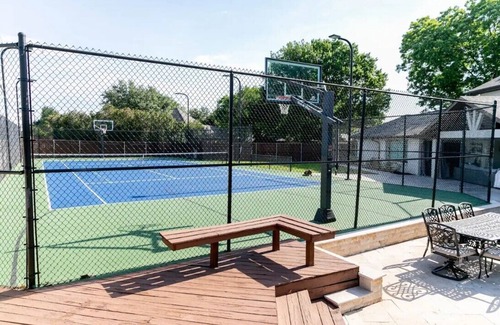 Make memories at this family-friendly home conveniently located in Plano minutes from Interstate 75 and George Bush Turnpike. Enjoy sporting activities on your private sport court set up for basketall, tennis, or the recently popular Pickleball! After sweating it out on the sport court enjoy a dip in the large swimming pool just steps away or a cocktail on the large covered patio. This spacious home offers 2 living spaces, large kitchen, 2 master suites, and 4 full baths.