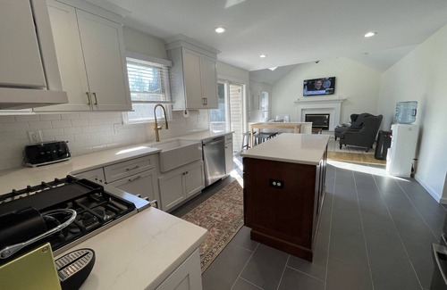 Newly updated home for your perfect friends and family North Fork getaway. The prime Southold location is minutes away from all the local wineries, beaches and restaurants. Enjoy activities in the spacious backyard with large heated pool, or grill and lounge on the deck. Inside the home you have 4 bedrooms, 2 full bathrooms and 1 powder room, including cable internet perfect for working/ZOOM-ing from home or streaming TV (Google mesh WIFI throughout)