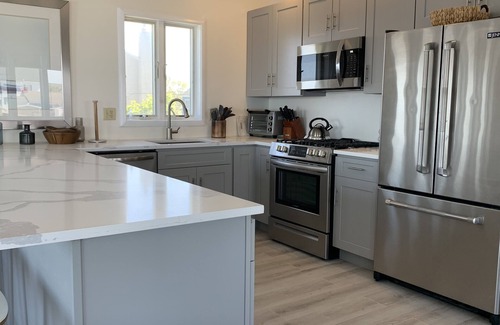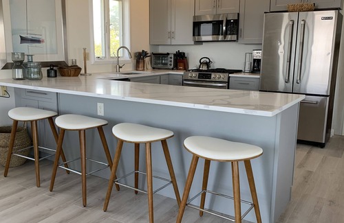 Inside, you can hang out and enjoy the view from two large comfy sectionals, a dining table that seats 10, or the breakfast bar with four stools. The kitchen and great room were completely renovated and decorated in 2021.