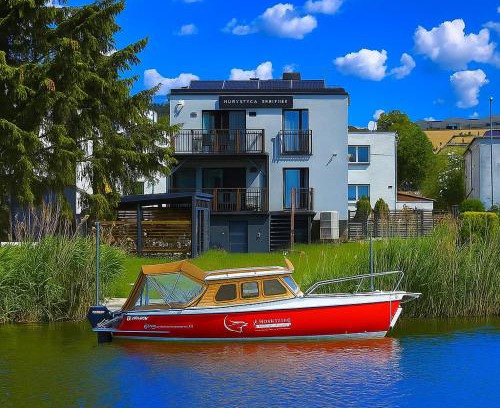 4jeziora - prywatny dostęp do rzeki, pomost, ogrodem, wiata grillowa, rowerek wodny, kajaki w cenie, parking, psiaki dozwolone features air-conditioned accommodations in Iława. This beachfront property offers access to a balcony, free private parking, and free Wifi. Guests can make use of the outdoor fireplace or the children's playground, or enjoy views of the garden and quiet street. The apartment provides guests with a terrace, river views, a seating area, cable flat-screen TV, a fully equipped kitchenette with a dishwasher and an oven, and a private bathroom with shower and a hair dryer. A microwave, a toaster, and fridge are also available, as well as a coffee machine and a kettle. At the apartment complex, each unit includes bed linen and towels. For those times when you'd rather not eat out, you can cook on the barbecue. Guests at 4jeziora - prywatny dostęp do rzeki, pomost, ogrodem, wiata grillowa, rowerek wodny, kajaki w cenie, parking, psiaki dozwolone will be able to enjoy activities in and around Iława, like fishing, canoeing, and hiking. Skiing and cycling can be enjoyed nearby, while a private beach area and water sports facilities are also available on-site. Stadium Lubawa is 13 miles from the accommodation, while Polish Church in Prabuty is 21 miles from the property. Olsztyn-Mazury Airport is 76 miles away.