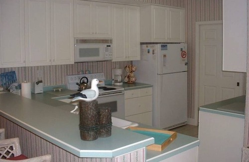 Our second bedroom has two queen beds and is connected to the second bath in the unit. Each bedroom has a TV and ample closet space. The living area is spacious and well furnished. We have a queen sleeper sofa and 2 recliners to insure that you relax and enjoy your stay. The dining table seats six and there is seating at the bar for three. The kitchen is fully equipped and has everything you need to feel right at home. The kitchen has beautiful, upgraded cabinetry and solid stone countertops. If you want to stay in and have great meals at the condo or just snack 24/7 - the kitchen will exceed your expectations. We also have a large spacious laundry room with full sized washer and dryer. Our second home is not the typical rental unit and we try to have everything you might need or want at your fingertips.