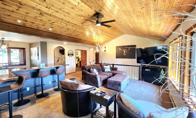 ❤️5+1 Bedrooms on 5 Private ACRES! VIEWS😎HOTTUB❤️GAMEROOM! Great Location! has 5 Bedrooms , 3 Bathrooms, and max occupancy of 15 people. The minimum rental for this property is 1 nights, but this can change depending on the season you plan on staying. Previous guests have given good rated it, and VRBO labeled it a top-rated House because of the excellent services rendered by the owner or manager of this House, and has consistently provided great experiences for their guests. Most families or guests that use it recommend it to their friends and some of them are repeat guests. House has a friendly neighborhood, and the Granby has interesting places to visit. If you want to learn more about the House in Granby, such as places to visit and things to do nearby, you can check below to learn more.