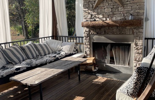This wide open floor plan with a gourmet kitchen is perfect for big group hospitality. Amenities include an outdoor fireplace, covered deck with table that seats 14, swimming pool, gas grill, trampoline, a wide open yard, and plenty of trees. Close enough to stores but far enough to feel like rural Kentucky.