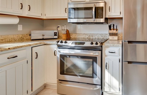 KITCHEN: Fully equipped w/ stainless steel appliances, microwave, toaster oven, coffee maker, Crockpot, dutch oven, serving platter, cooking basics, dishware/flatware, breakfast bar w/ stools, high chair, kids’ dinnerware