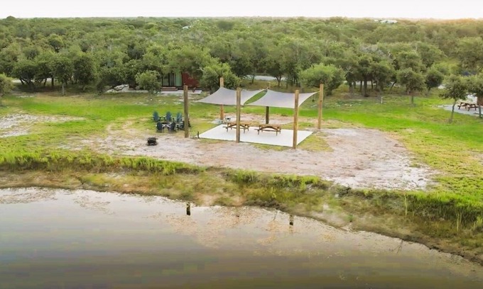 Our modern 3-Container Camp is the perfect basecamp for coastal adventures, including fishing, boating, birding, water activities, or just escaping from the city. Our home has a bedroom with a Queen bed, full bathroom, full kitchen, and a sofa bed. Also, onsite is a picnic table, fire pit, grill and plenty of shade trees. Our location has two ponds, wildlife, and bird feeders. Experience an authentic coastal Texas getaway. Each unit has Truck and boat trailer (up to 25' boat) parking. Five acre property with three private units (tiny container homes) -Two ponds -One stocked with largemouth bass -Both attract plentiful native wildlife -Common area with fire pit, grill, and picnic tables The Units - Large windows to take in the sunlight and view the surrounding nature. - One bedroom with queen bed - Private bathroom with Oahu ShowerSpa - Kitchen with microwave, fridge, stove, cooking utensils and cutlery - Living area with sofa bed - Truck and trailer parking (up to 25' boat) Guest's have access to the full 5 acre property. It is important to fully understand property boundaries and to not trespass on neighboring properties. The front pond has cleared access and stocked with fish, the back pond has been left un-refined and better left untouched for wildlife habitat. There are things that bite, sting, and poke, just like you would expect in any wild and natural space. We strive to provide best fishing in Texas. Ask about early check-in/late check-out availability (fee may apply) Self check in and check out. Lock boxes are located two the left of the steps when looking at the front door. Code and further instructions will be sent in email. All artwork is curated by a local Texas coastal photographer, Mac Elliott, and is available for purchase through her website. We aim to be good stewards of our environment and ask all guests to do the same; please leave no trace and always leave a place better than you found it.