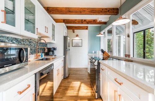 Escape to this charming 1-bedroom cottage, perfect for a romantic retreat or a small group. The primary bedroom features a sumptuous Queen bed, while the living room offers additional sleeping space with a pull-out couch, accommodating up to 4 guests.
