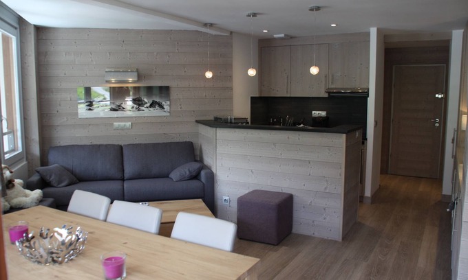 Completely renovated in 2016, this apartment has been designed and built with the aim of making you feel at home, from the first moment. You will find candles next to the bathtub for baths in music and soft light, a Nespresso machine and its capsules for morning coffee, high-end furniture (Ethnicraft in solid oak), Sylvie Thyriez "mountain" dishes quality, a large format UHD flat screen TV in each room. All the details have been thought out to allow you to spend an unforgettable vacation!