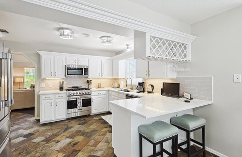 This kitchen is undeniably the heart of the home! With an oversized layout, classic white cabinets, and plenty of counter space, this kitchen was made for socializing and entertaining. Fully equipped to inspire culinary creativity, we’ve also provided the much-important coffee machine to ensure you start every day off on the right foot!