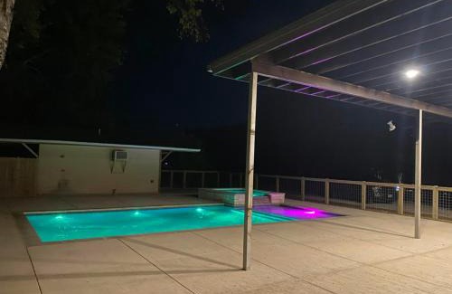 5 BDRM Home on 2 Acres Mins To Wineries Private Heated Pool and Hot Tub is a recently renovated vacation home in Johnson City where guests can make the most of its outdoor swimming pool, garden, and barbecue facilities. Guests can benefit from a patio and an outdoor fireplace. There's a sun terrace and guests can use free Wifi and free private parking. Providing a balcony and pool views, the spacious vacation home includes 5 bedrooms, 2 living rooms, satellite flat-screen TV, an equipped kitchen, and 4 bathrooms with a walk-in shower and a hot tub. The air-conditioned unit at the property features a bath and a dressing room. The vacation home offers bed linen, towels, and laundry service. For guests with children, the vacation home provides indoor and outdoor play areas. The vacation home has a picnic area where you can spend the day outdoors. Austin-Bergstrom International Airport is 52 miles away.