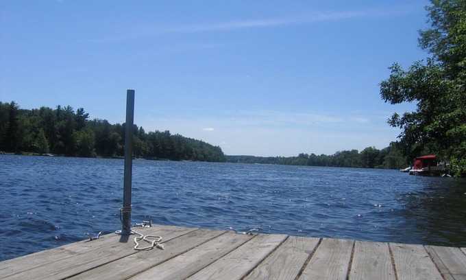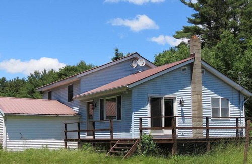 5 Bedroom house across the road from the lake. We have a private dock across the road from the house (shared by our three houses), however it's not a good place for swimming since it's in a rocky area, there is a quite public beach one mile away. Two of the bedrooms have a Queen size bed and a twin size bed and two of the bedrooms have a set of twin size beds. One and a half bathrooms. Plenty of beautiful open space outside. The house is available year round, and of course is air conditioned and heated. There is a game room with a ping pong table and foosball table.