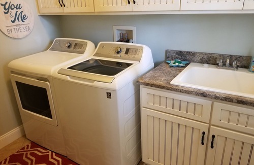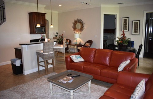 Traveling with your pet? Well-behaved dogs 65 pounds or less are considered for an additional fee. Tiled outside concealed shower hidden under the stairs is perfect after a day on the beach or the two pools next door. Sleeping space for more, but currently Homeowner's Association caps overnight guests at 12 people. One garage is for guest use with additional parking in driveway for up to 5 average size vehicles total.