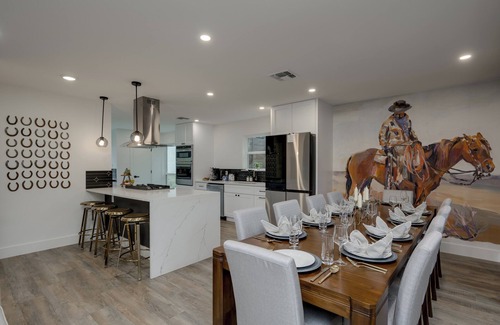 Welcome to Boots and Bourbon Bungalow, your private oasis in the heart of Austin! This spacious 5-bedroom home combines southern charm with modern comforts, offering the perfect spot for relaxation, fun, and making unforgettable memories. Located just 10 minutes from downtown Austin, you can easily explore the city while enjoying the tranquility of your own retreat.