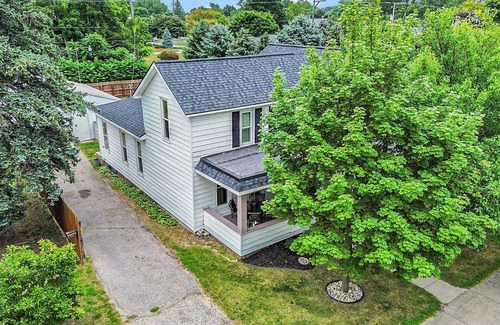 The Porch in Ludington is a 5 bedroom, 2 bath home located in the heart of downtown Ludington and sleeps up to 14. Enjoy the splendor of in home comforts including a fully equipped kitchen, Wi Fi, central air conditioning and spacious living areas. Located within walking distance to downtown and within minutes to the pristine sandy beach of Lake Michigan at Stearns Park, you will find this home perfectly positioned for all your interests. Pets are welcome! 2 pet maximum, $100/pet. Please note, Pet Fee(s) will be applied after booking and are not included at checkout.