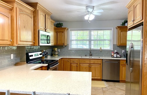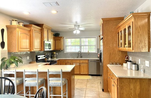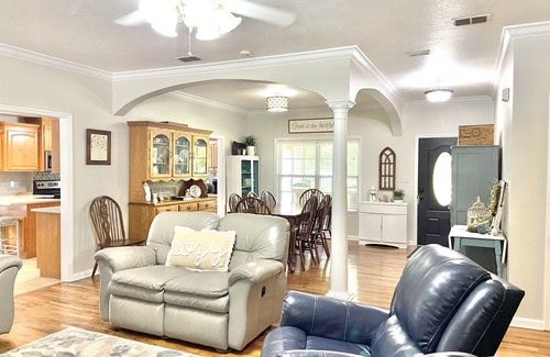 16 miles from FSU and 20 minutes from downtown Tallahassee. This quiet, beautiful neighborhood is the perfect place to relax after a long day. House sits on 2 acres just minutes from the vintage town of Havana. Fenced backyard with above ground pool (pool not fenced in separately). Sleeps 10. Master Suite has King sized Sleep Number bed, TV in room and jacuzzi tub with separate shower. One hall bath with tub shower combo, and one bed/bath with shower. 4 BR's with full beds. Formal DR seats 8, kitchen table seats 6, and 3 bar seats. Open concept living area with wood fireplace, 55" TV with YouTube TV, and WIFI. We're interested in making your stay as perfect as possible. We would love to host your family!
