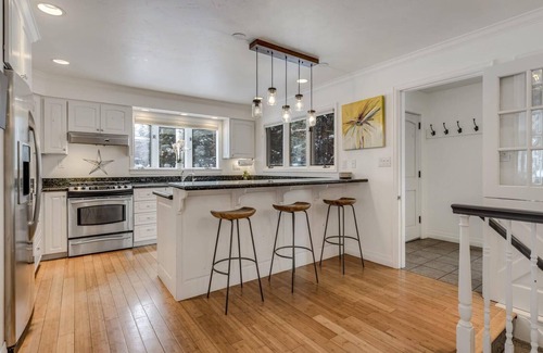 Nestled in Aspen, this 5-bedroom, 3-bathroom vacation home brings it all within your reach. Fans of nature and the outdoors will love being 13 minutes by foot from Roaring Fork River and 5 minutes by car from Wagner Park. With the property's convenient covered onsite parking, you'll be ready to make the quick 5-minute drive to Buttermilk Mountain or the 6-minute drive to Aspen Highlands.