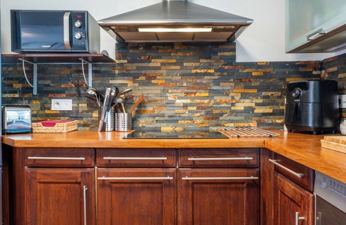 - An open-floor well-equipped kitchen with small and large appliances, full range of crockery, induction hob, oven, Nespresso coffee machine, etc…
