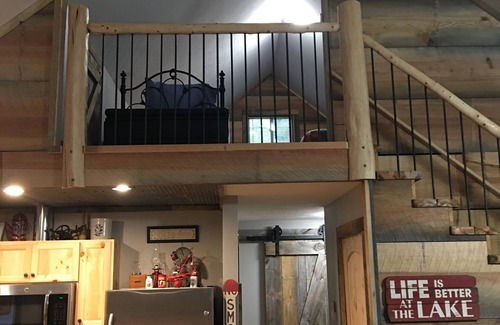 This Luxury Cabin, with Native Barn Wood Accents, is in a private woodland setting.The cabin is located only 2 minutes from Buzzard Roost Boat Dock on beautiful Lake Norfork nestled in the Ozark Mountains. Mountain Home restaurants and retail are located only 3 minutes away. The White River, Buffalo River and Norfork River are just minutes away. All have world-class fishing. There are many hiking trails in the area. The area is also great for motorcyclist. This cabin has an open Living Area (with electric fireplace ) , a master Bedroom (King Bed) and a on-suite bathroom with cultured marble shower and large soaking tub. The Cabin also includes a downstairs bedroom (Queen and Twin Beds) and a spacious upstairs loft (2 Full and 1 XL Twin Beds). The kitchen is fully equipped (stainless steel appliances and granite counter tops). The Cabin includes Cable TV (in ALL rooms), wireless internet, a covered porch that wraps around 3 sides of the cabin . A gas grill is also located under the car port. We also have 4 other cabins on this property their I.D. numbers are 810563, 810636, and 810644, 1615630.