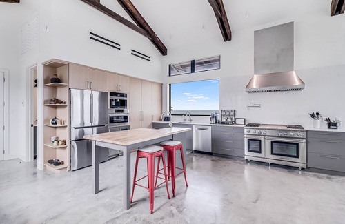 Nestled among the oak trees in Rockport, Texas, lies this modern yet cozy brand new house. When you walk in you still feel like you’re outside with the abundance of windows, looking out into the oaks. The main house is a 1 bedroom top of the line home located right on Copano Bay. Upgraded appliances including gas range, wine cooler, ice machine and more. Upscale bedding, and furnishings. The most amazing view of any home in Rockport! Private screened in porch with a sectional sofa and plenty room to get comfortable and watch the most amazing sunsets in South Texas. There is also a private pier for fishing and just sitting and having great conversation. The cottage located right next to the main house is furnished with a king size, plush bed, comfortable linens and upgraded pillows. There is also a small bistro area in the bedroom where you can sit and enjoy a coffee or a cocktail in the evening. Walking to the right of the bedroom is a kitchenette area complete with a microwave, mini fridge, Keurig coffee, pot, and plates and utensils for your use. The large bathroom has a double vanity, upscale shower with a rainfall showerhead. This is the perfect place to enjoy a romantic evening , or just a place for you to get away from it all and relax. The complex has a pier for guests to use which is lighted and also has ramps to pull your kayak up. There are a number of very friendly deer that come around throughout the day and numerous types of birds that migrate through the property. Come enjoy this new treasure in Rockport. We hope to see you soon.